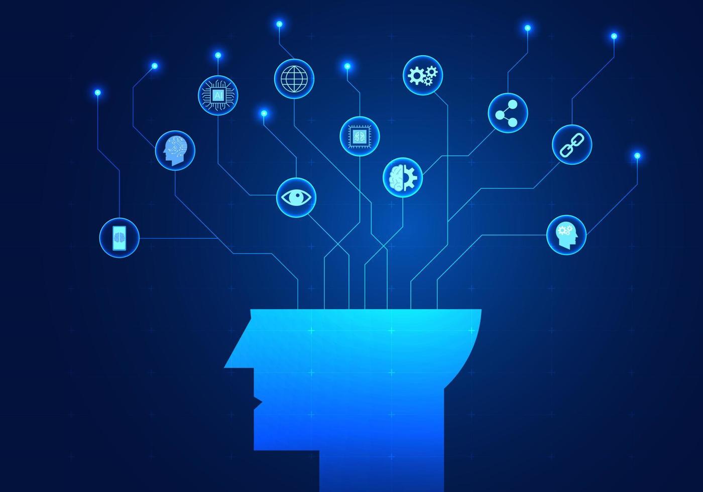 Artificial intelligence that enters the smart technology system is an ai that commands and learns information from humans. to help meet the needs of users and help solve business problems Pro Vector