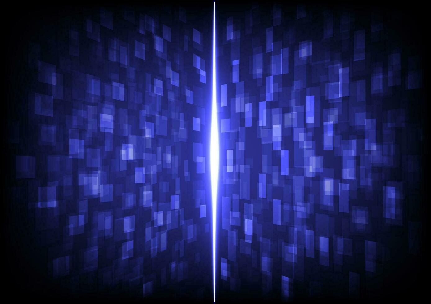 Abstract Perspective Background - Futuristic Technology Square matrix overlapping several layers. In the center there is a beam of light and a circle of light. blue gradient background Pro Vector