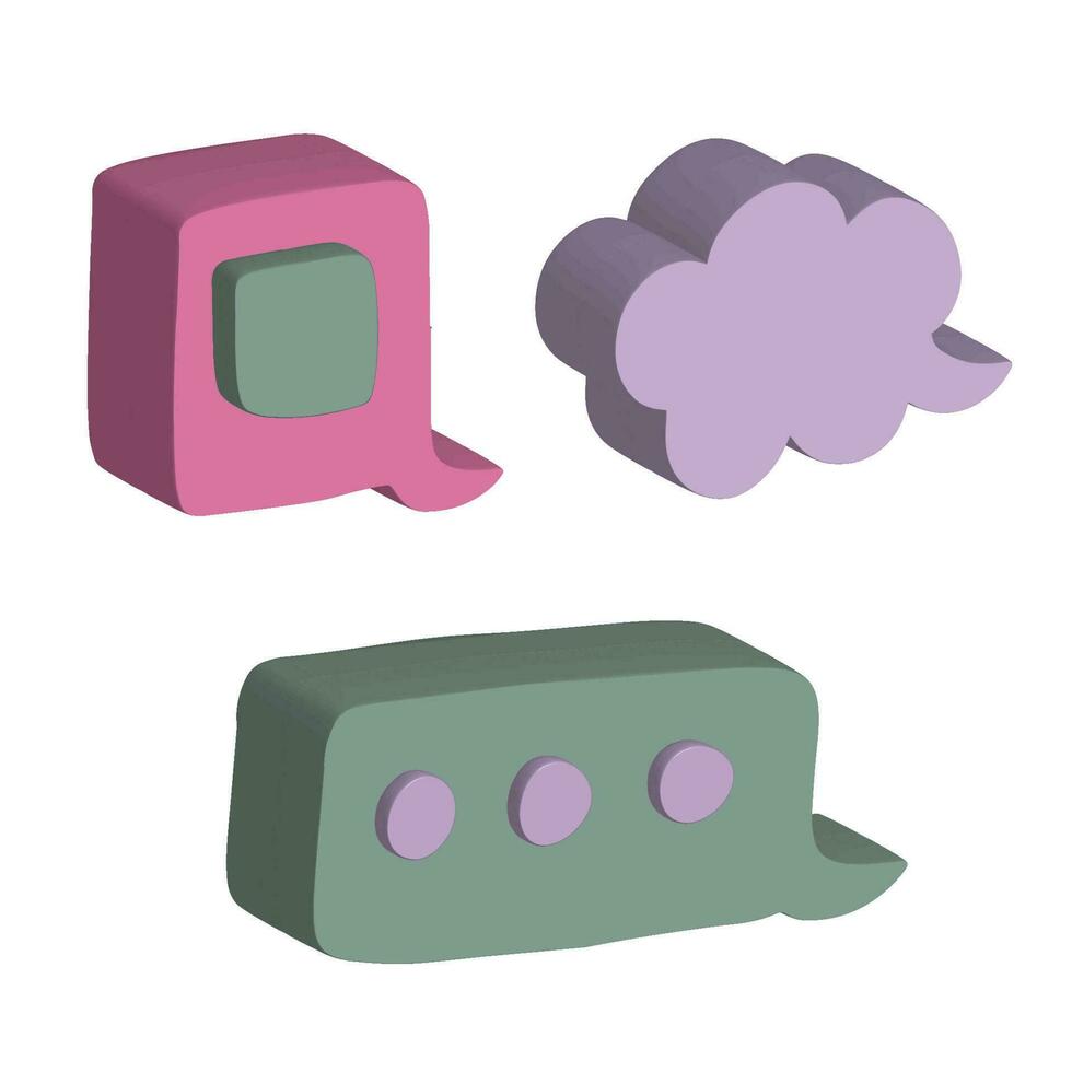 Speech bubble 3d. Talking clouds for chat and messages. Dialog icon set on isolated background. Vector Pro Vector