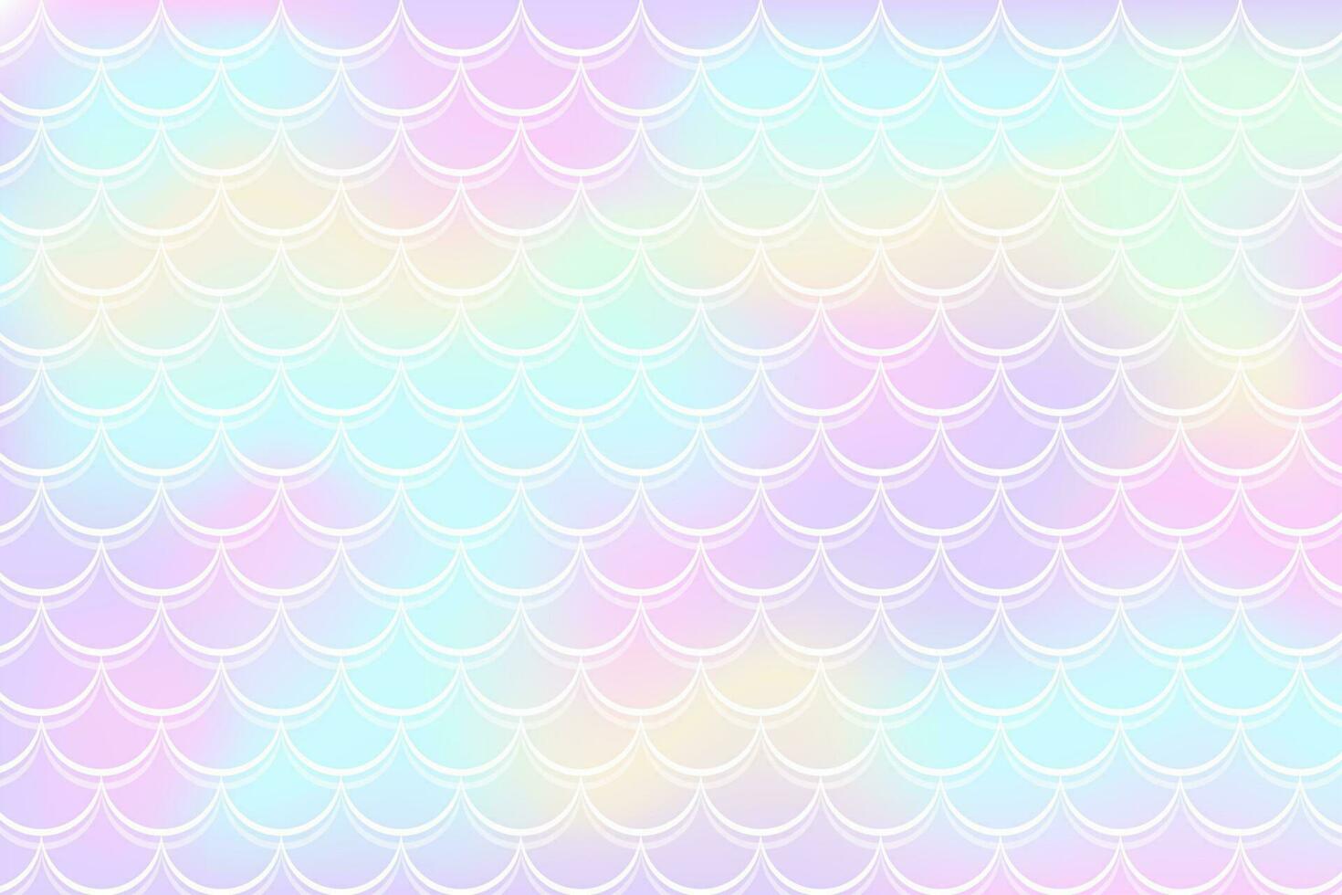 Holographic rainbow background with mermaid scales. A pattern with a tail on a gradient. Marine underwater pattern. Vector Pro Vector
