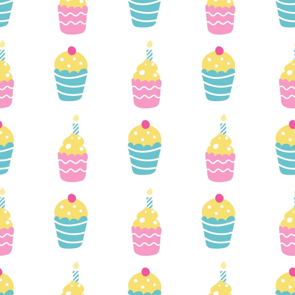 Cupcakes, muffins with cream and berries on a white background. Vector seamless pattern in a flat style Pro Vector