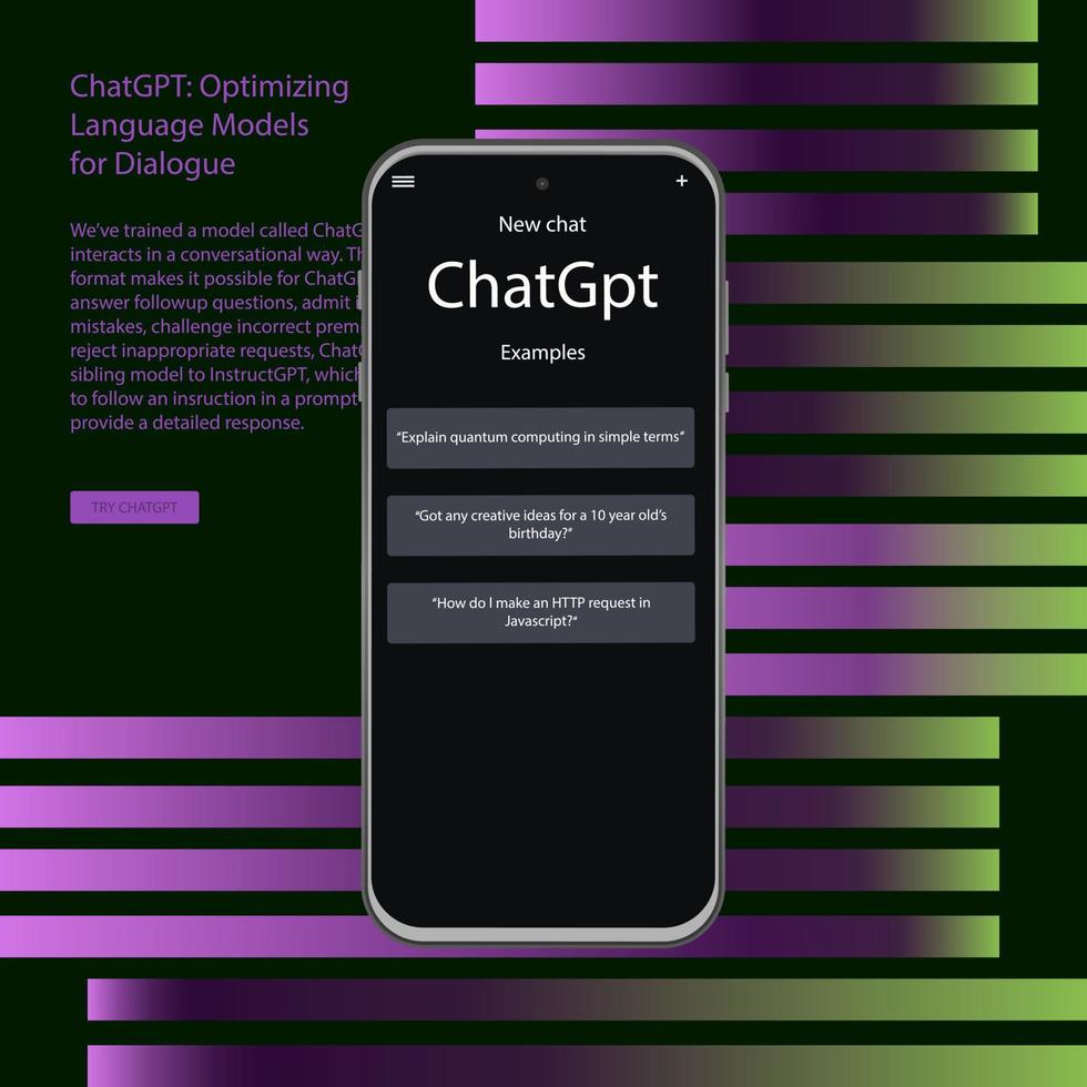 Smartphone screen with ChatGPT chat, AI tool,  and artificial intelligence chatbot from OpenAI. ChatGPT site. vector