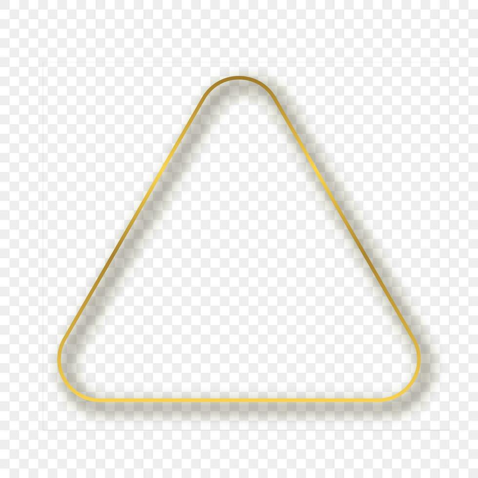 Gold glowing rounded triangle frame with shadow isolated on background. Shiny frame with glowing effects. Vector illustration. Pro Vector