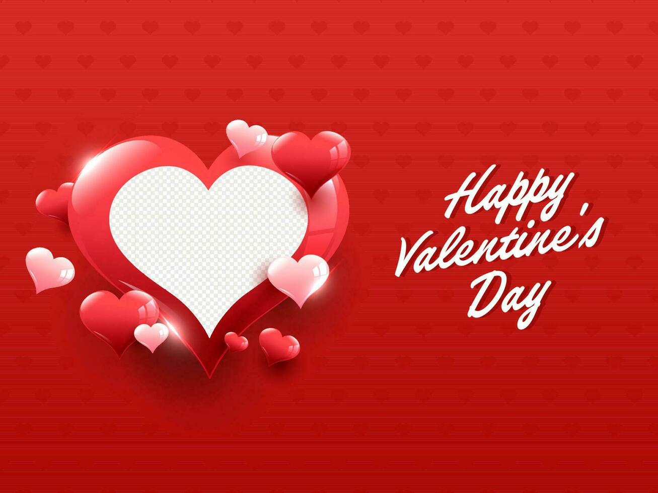 Happy Valentine's Day Font With Shiny Hearts Shapes And Space For Image On Red Background. Pro Vector
