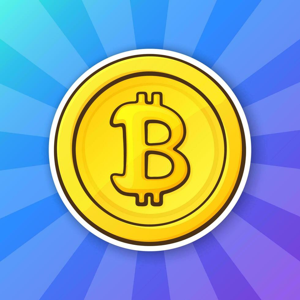 Golden coin with Bitcoin sign. Symbol of crypto currency. Global virtual internet money. Block chain based secure crypto currency Pro Vector