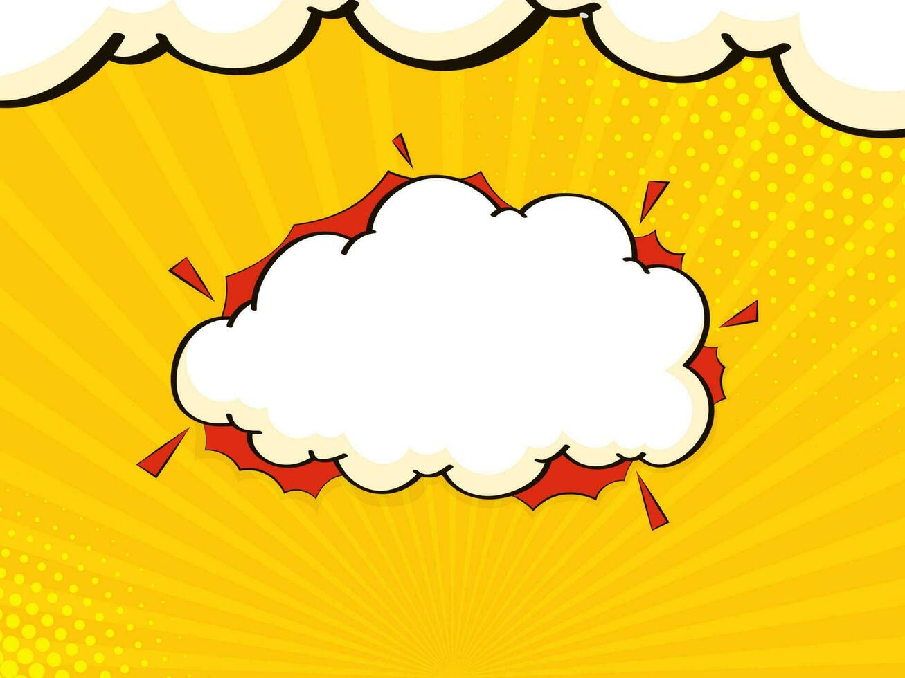 Yellow Rays Dotted Background With Empty Cloud Frame. Pro Vector