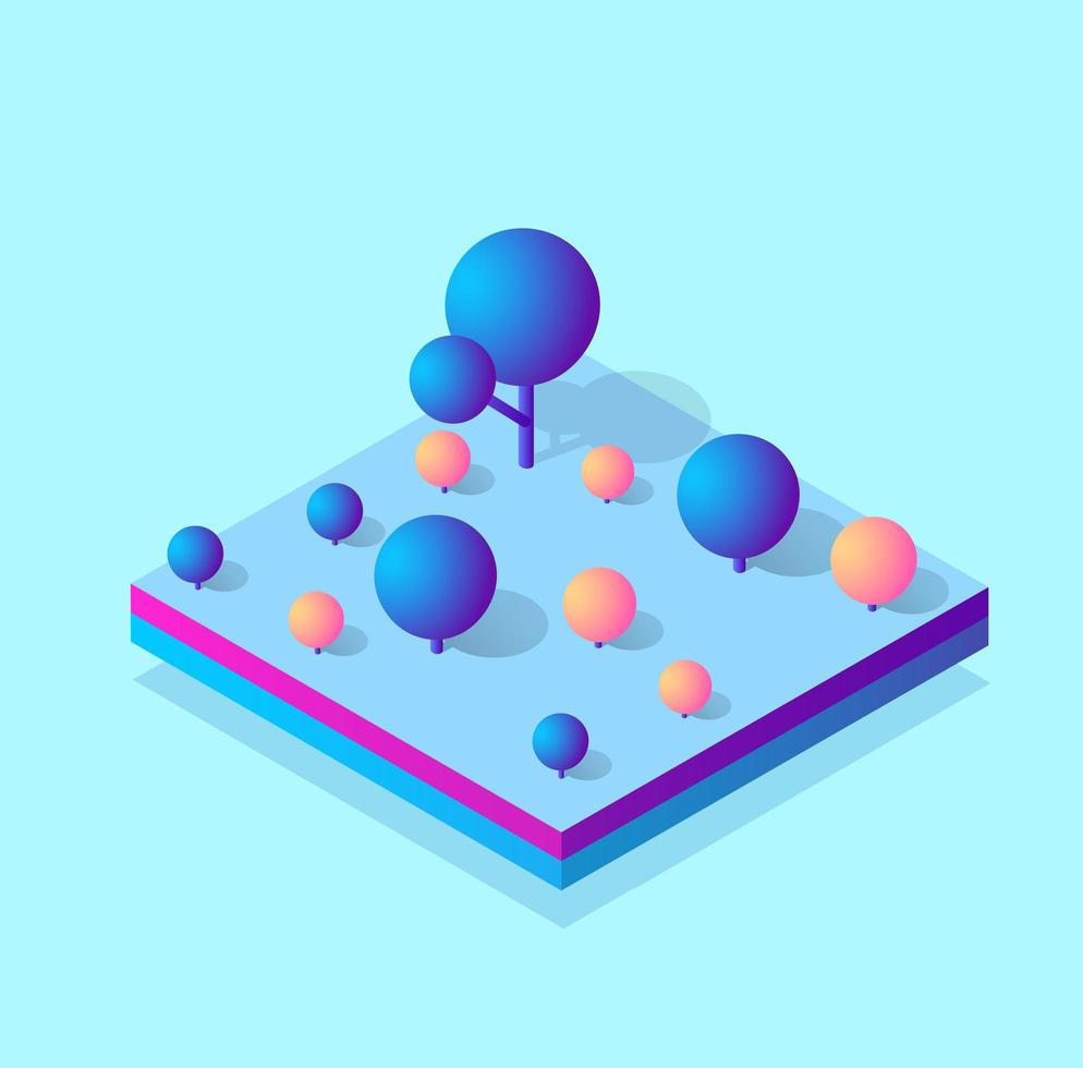 Isometric 3d block module of the district part of the city with a lawn park trees from urban infrastructure vector architecture. Modern illustration for game design. Pro Vector