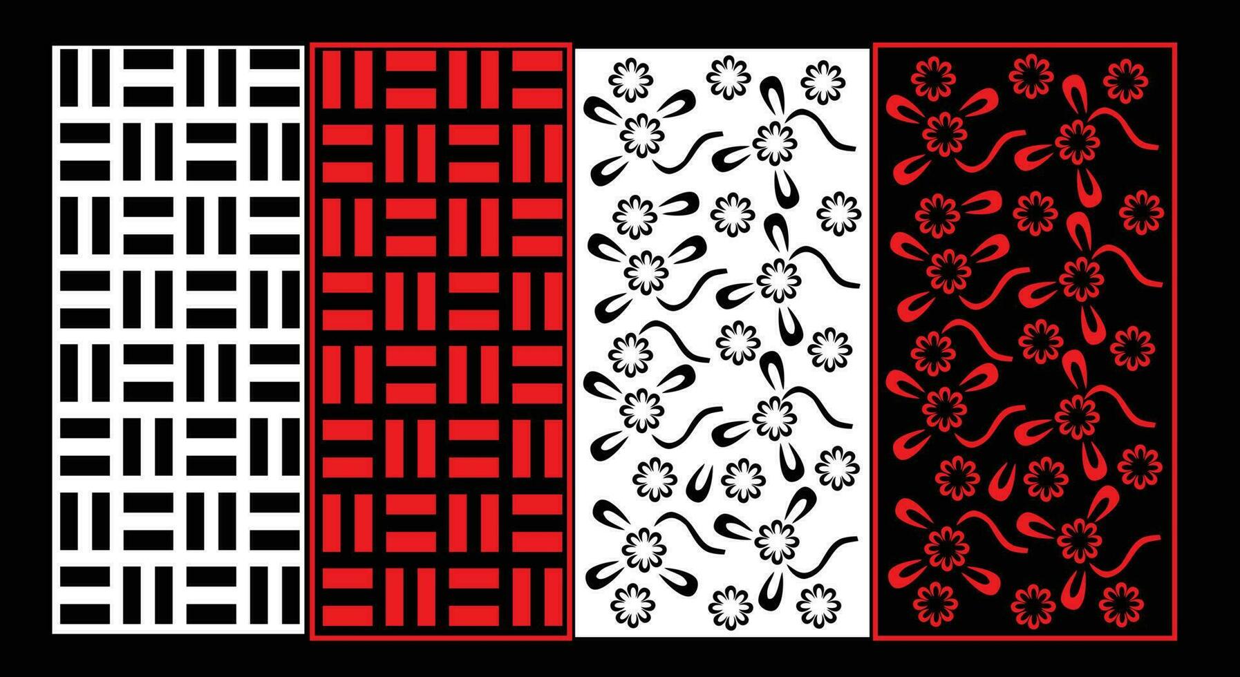 Decorative wall panels set Jali design CNC pattern, laser cutting pattern, router CNCcutting.Jali Laser cut decorative panel set with lace pattern. vector
