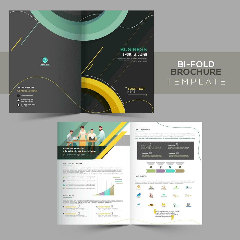 Bi-Fold Brochure Template Layout in Front and Back View for Business Concept. Pro Vector