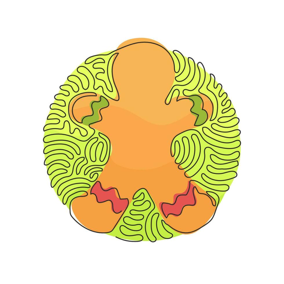 Single continuous line drawing gingerbread man icing. Cookie in shape of man. Illustration for winter holiday, cooking, new year's eve. Swirl curl circle style. Dynamic one line graphic design vector Pro Vector