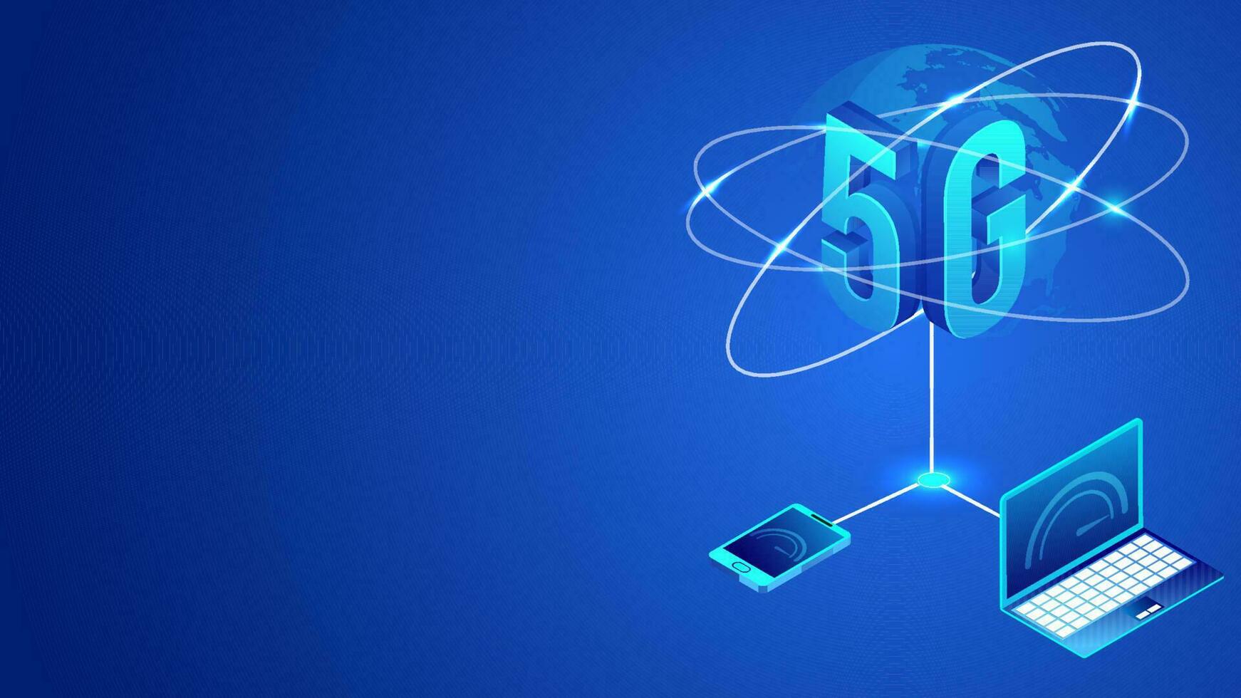 International worldwide 5G data internet network service concept, using internet data service connection of digital device laptop with smartphone on blue background, 3d illustration vector. Pro Vector