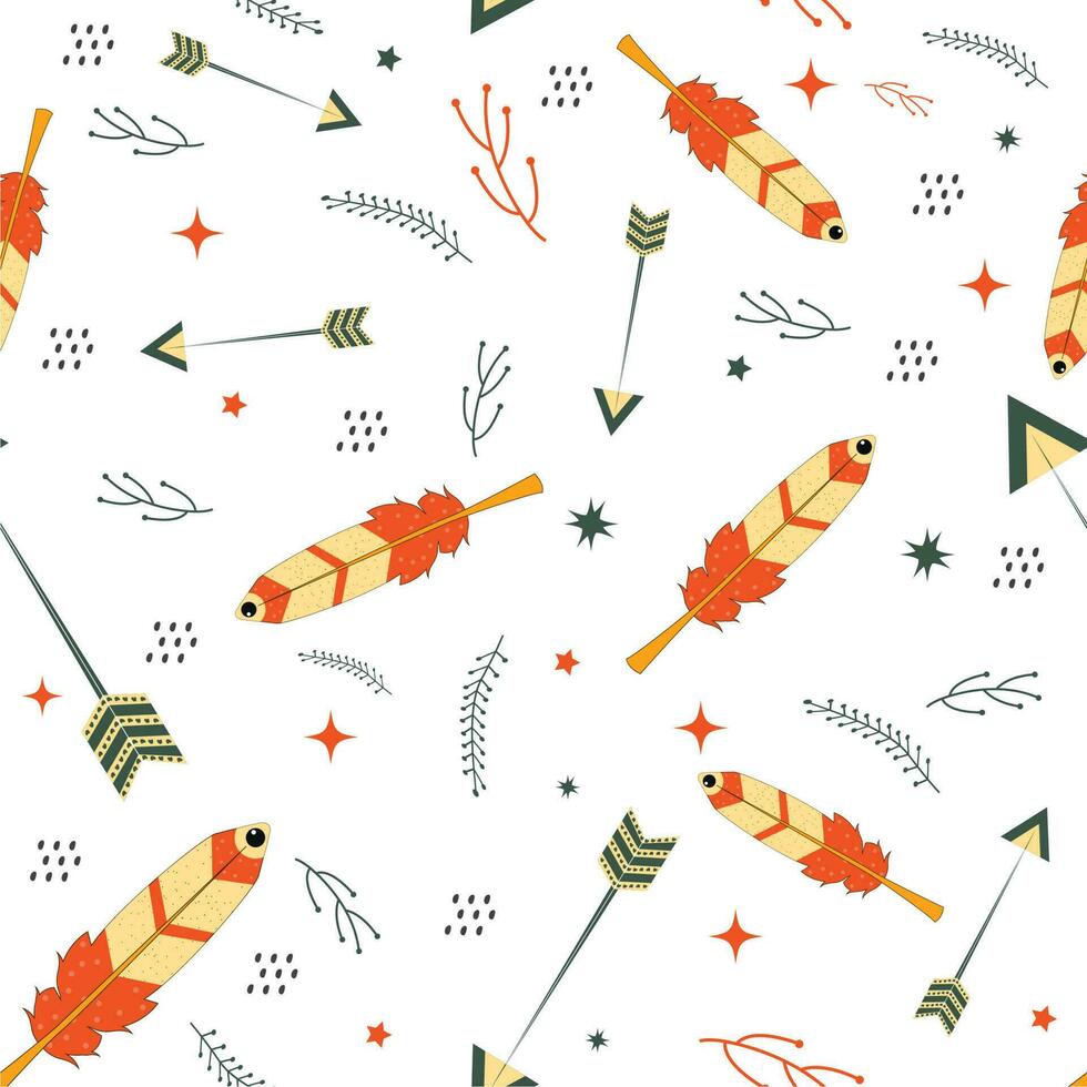 Seamless Pattern Of Feathers With Arrow And Leaves In Boho Style. Pro Vector
