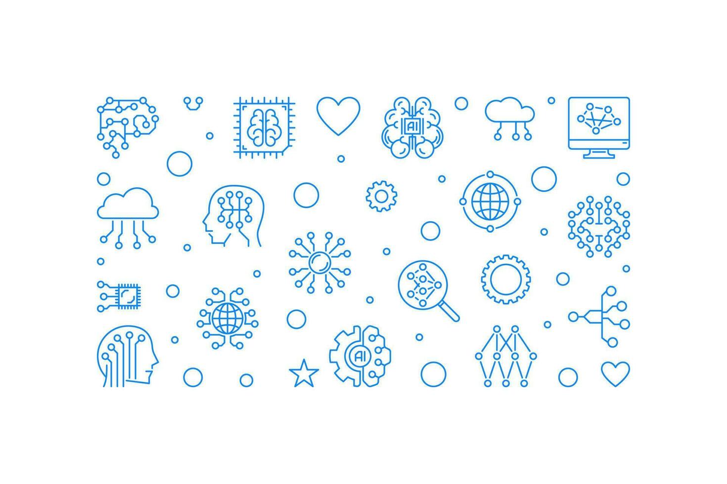 Artificial Intelligence Digital Brain Technology concept line horizontal vector simple banner Pro Vector