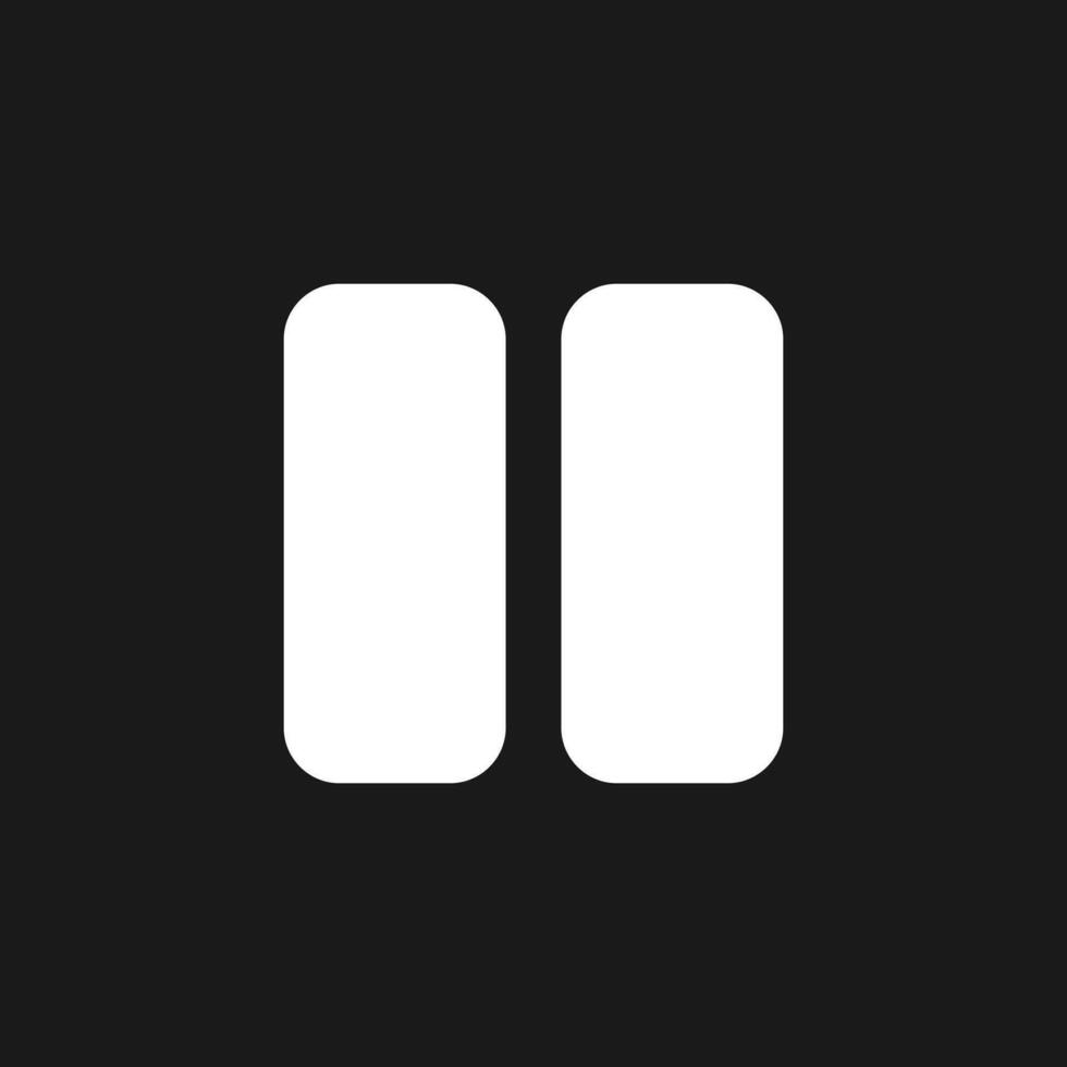 Pause button dark mode glyph ui icon. Music player bar. Playing multimedia. User interface design. White silhouette symbol on black space. Solid pictogram for web, mobile. Vector isolated illustration Pro Vector