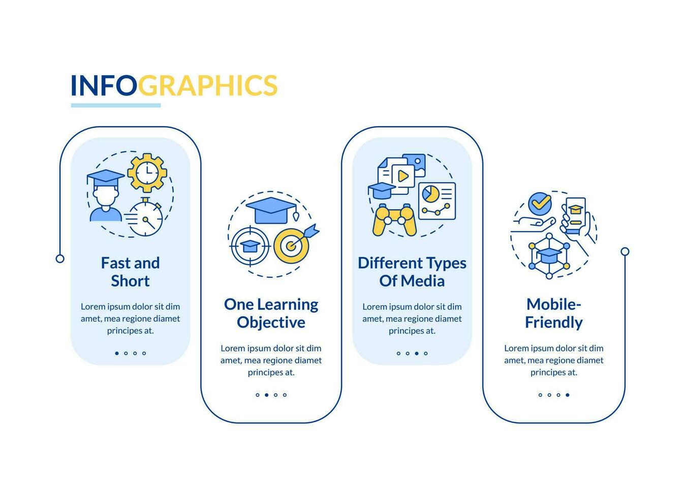 Microlearning characteristics rectangle infographic template. Media. Data visualization with 4 steps. Editable timeline info chart. Workflow layout with line icons Pro Vector