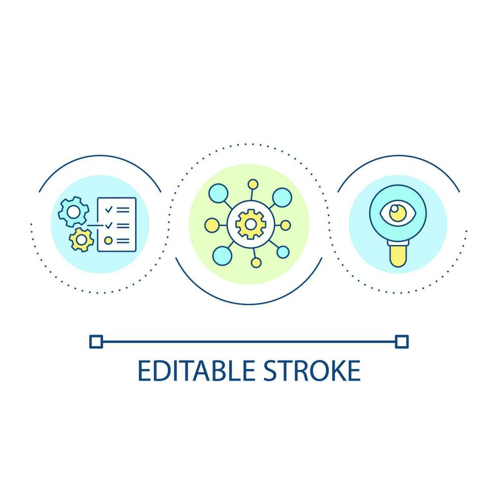 Systematization in data analytics loop concept icon. Information studying process. Management abstract idea thin line illustration. Isolated outline drawing. Editable stroke Pro Vector