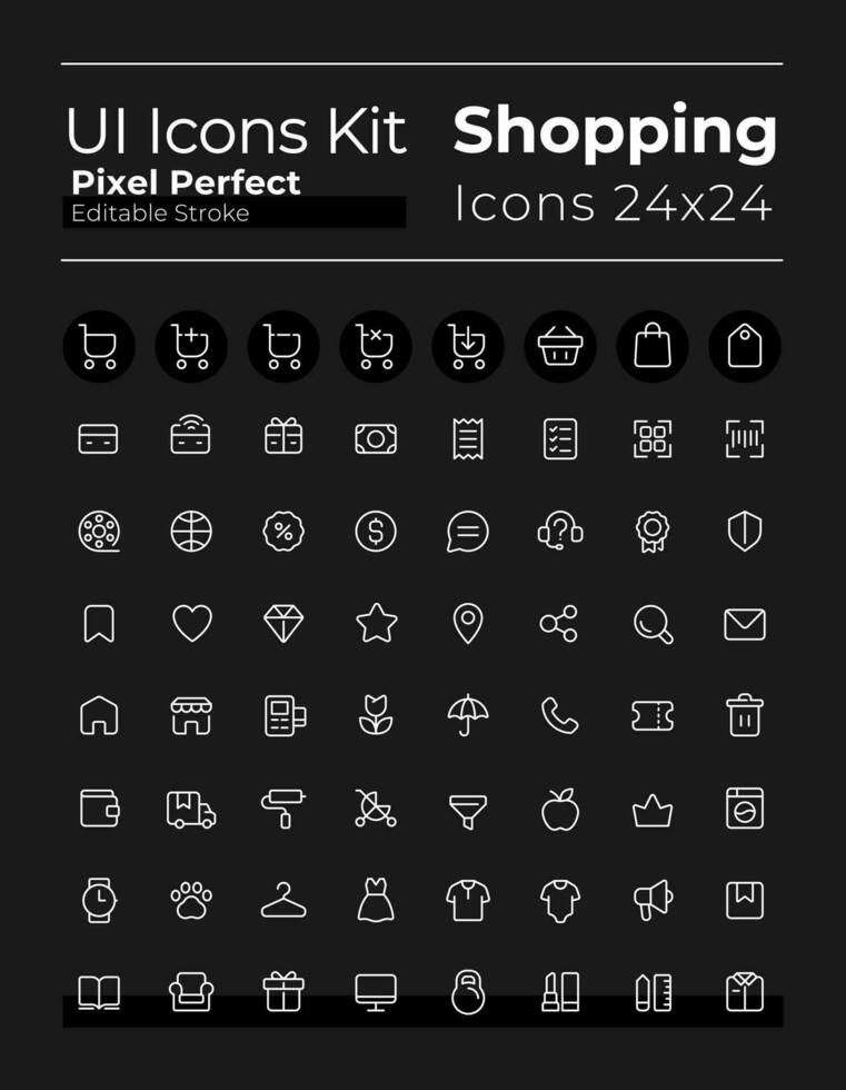 E commerce pixel perfect white linear ui icons set for dark theme. Retail. Isolated user interface symbols for night mode. Vector line pictograms. Editable stroke Pro Vector