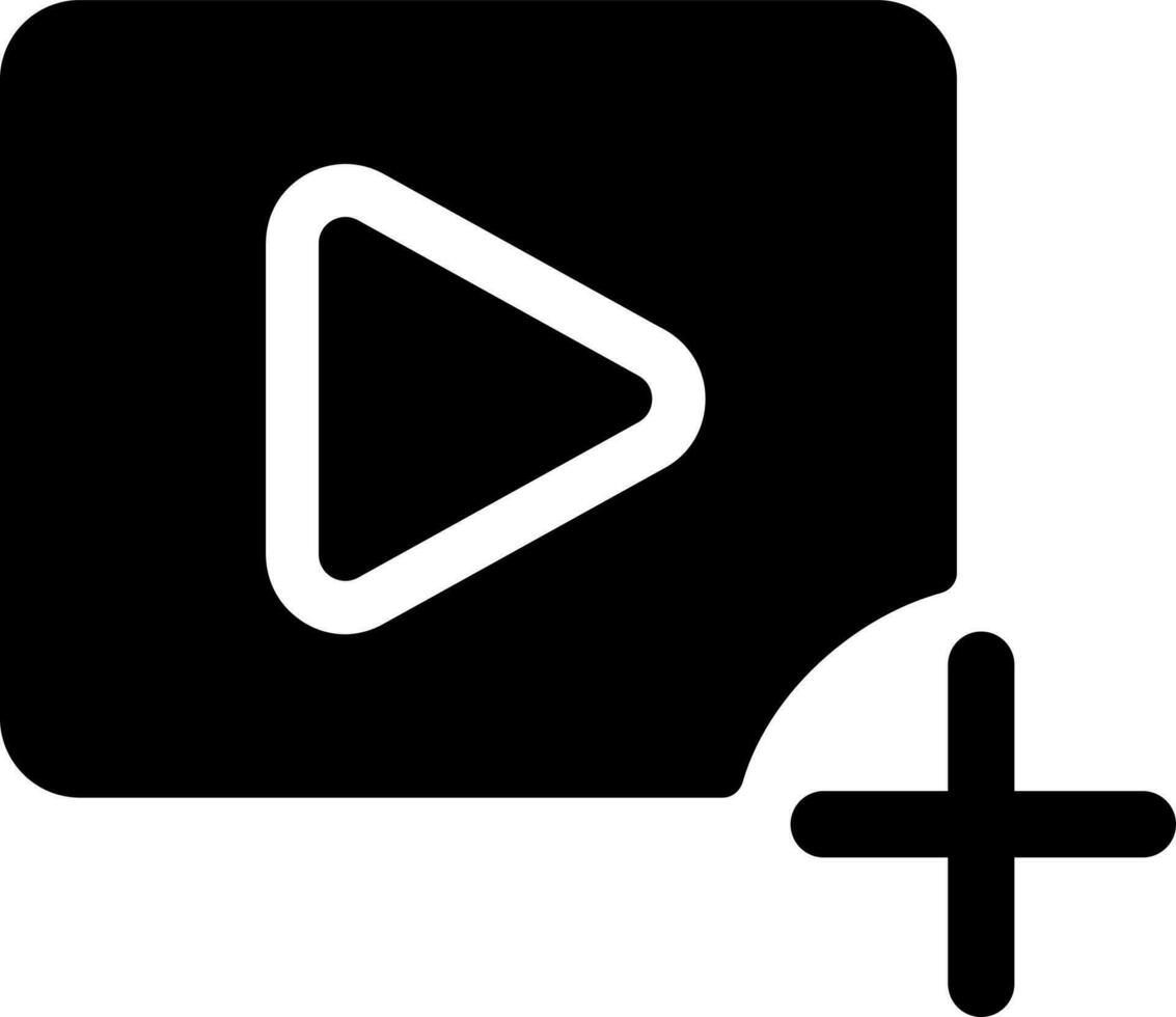 Add video file black glyph ui icon. Import content. Simple filled line element. User interface design. Silhouette symbol on white space. Solid pictogram for web, mobile. Isolated vector illustration Pro Vector