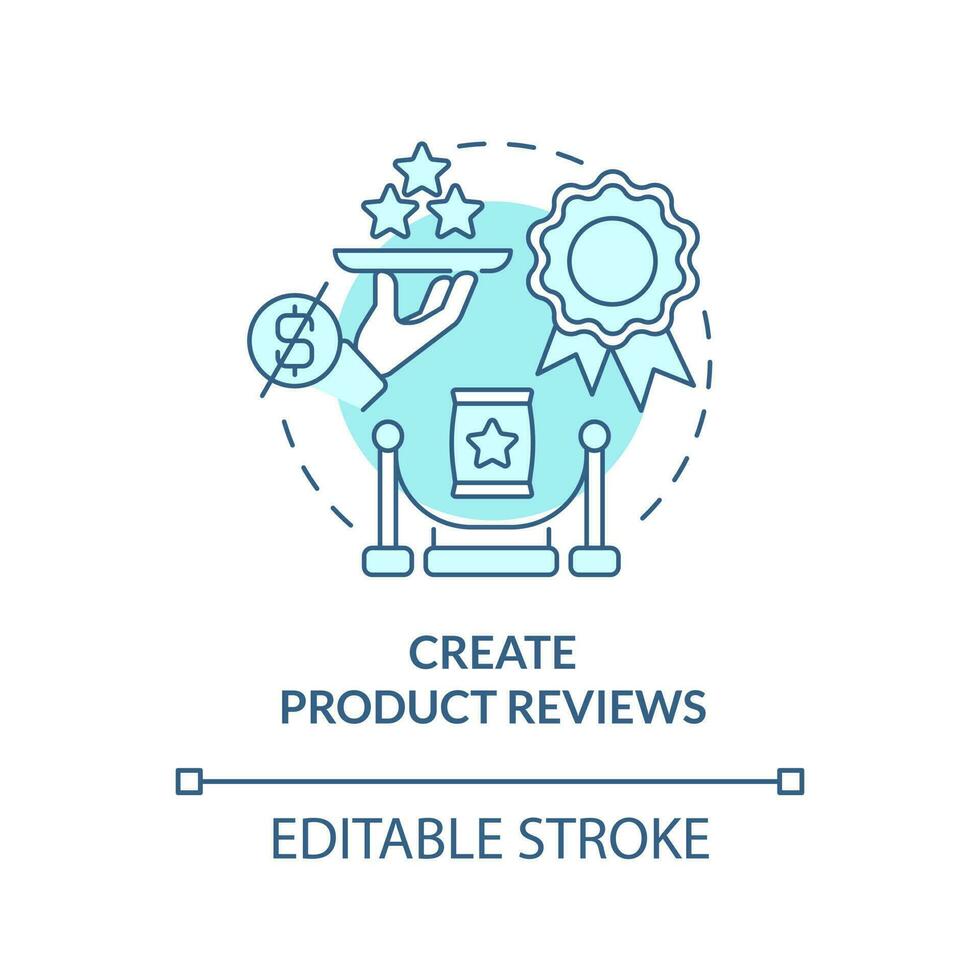 Create product reviews turquoise concept icon. Begin affiliate program abstract idea thin line illustration. Isolated outline drawing. Editable stroke Pro Vector