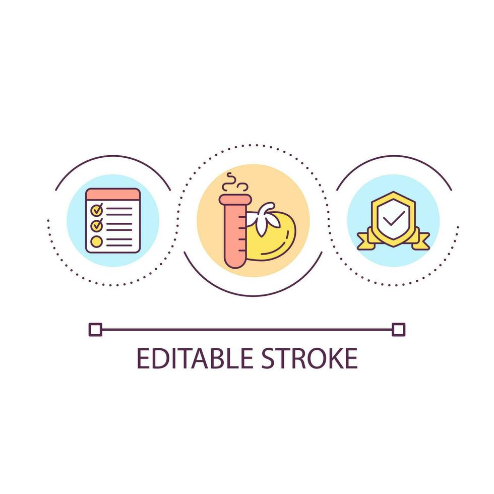 Verification of food quality loop concept icon. Products checkup process. Safe nutrition certification abstract idea thin line illustration. Isolated outline drawing. Editable stroke Pro Vector