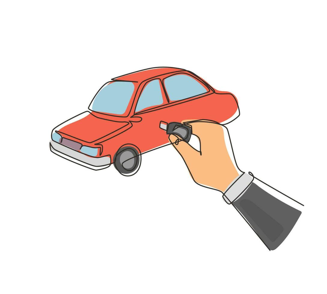 Single continuous line drawing hand turning the key in the hole on the car door. Man uses key to open the new vehicle. Automobile rental. Dynamic one line draw graphic design vector illustration Pro Vector