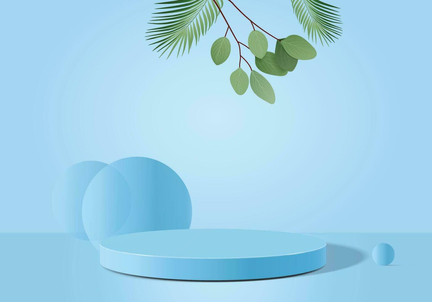 Minimalistic 3D Cylinder Podium with Overlapping Circles and Leaf Background vector