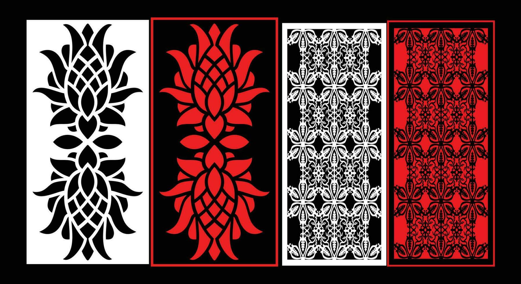 Decorative wall panels set Jali design CNC pattern, laser cutting pattern, router CNCcutting.Jali Laser cut decorative panel set with lace pattern. vector