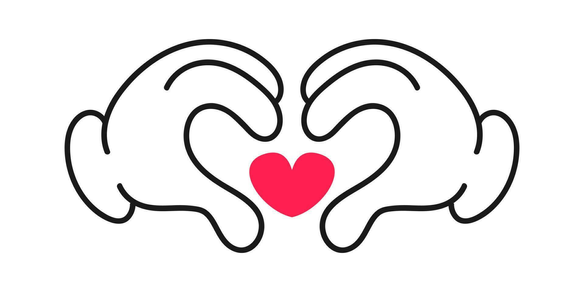 Gesture from palms in shape of heart. Vector linear illustration of expression of love with two hands. Pro Vector