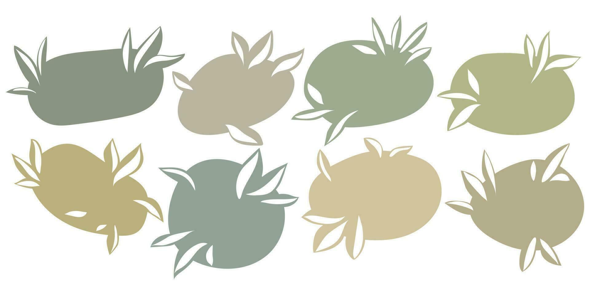 Organic amoeba drop shape shades of natural flowers with leaves. vector illustration. isolated on a transparent background. A set of graphic elements of irregular round shape in the form of a blob Pro Vector