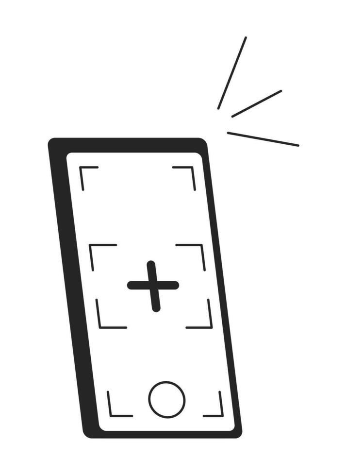 Taking photo with phone flat monochrome isolated vector object. Taking picture with cellphone. Editable black and white line art drawing. Simple outline spot illustration for web graphic design Pro Vector