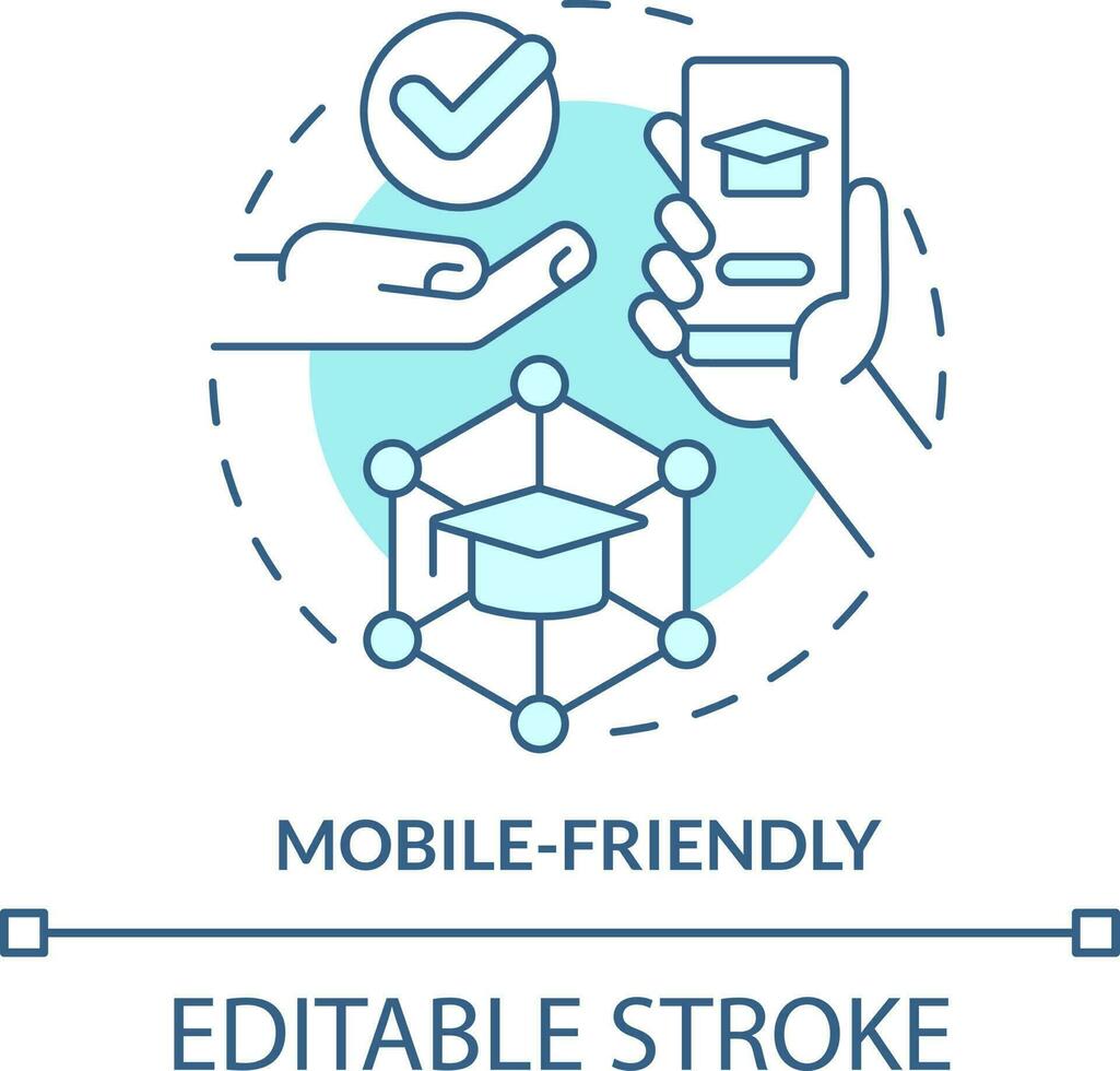 Mobile-friendly turquoise concept icon. Microlearning feature abstract idea thin line illustration. E-learning software. Isolated outline drawing. Editable stroke Pro Vector
