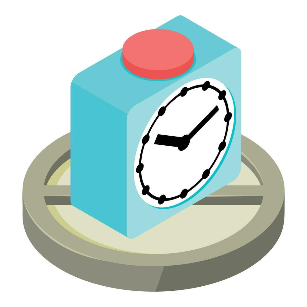 Square clock icon isometric vector. New square desktop clock with big red button Pro Vector