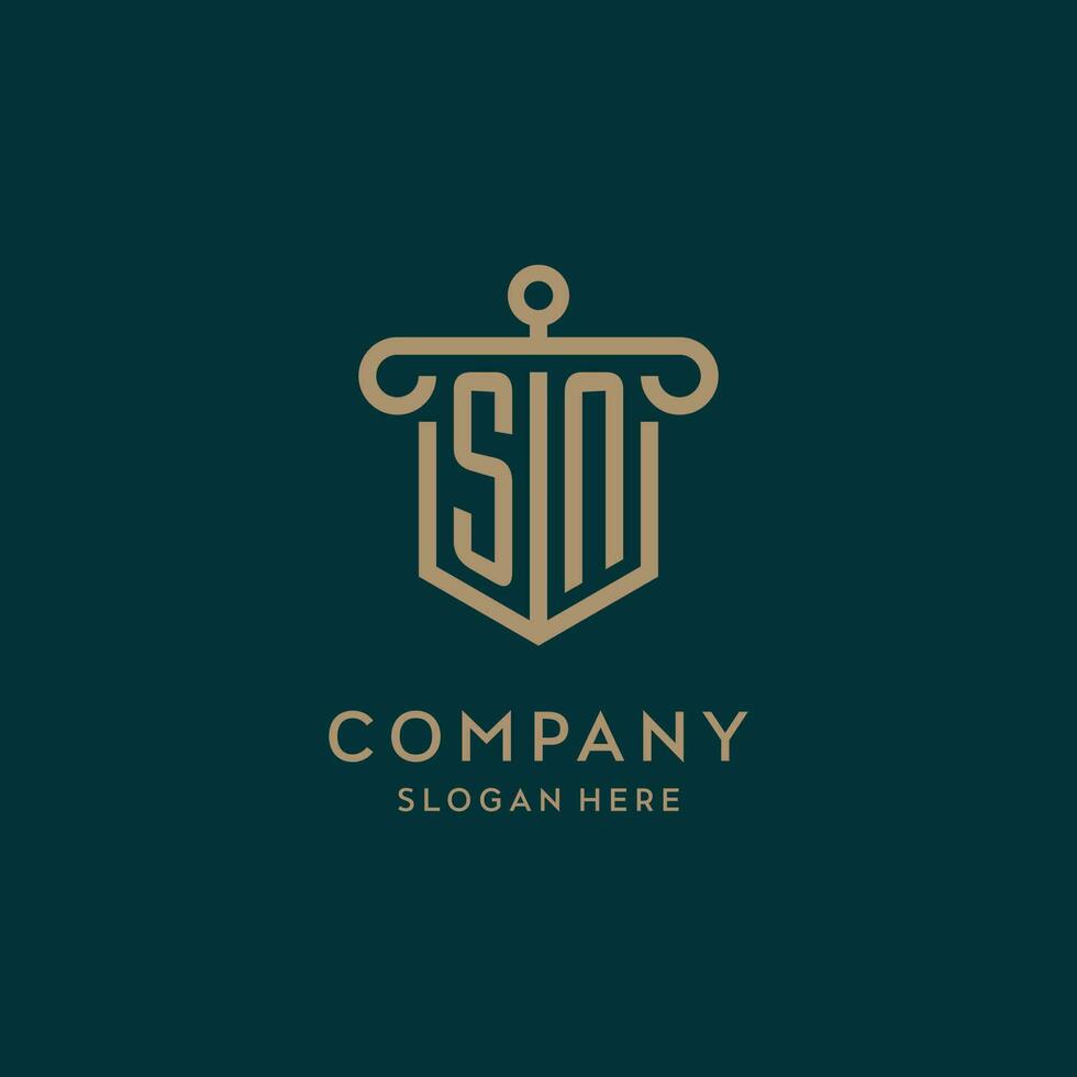 SN monogram initial logo design with shield and pillar shape style Pro Vector and Pro SVG