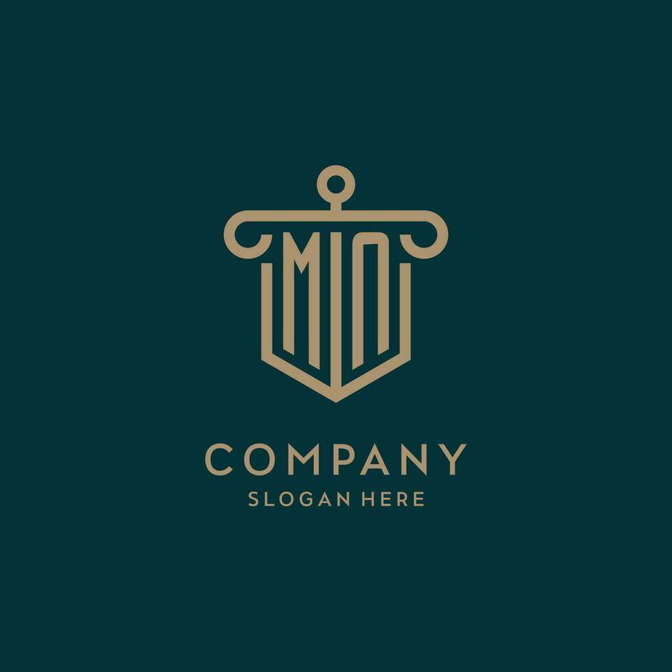 MN monogram initial logo design with shield and pillar shape style Pro Vector and Pro SVG