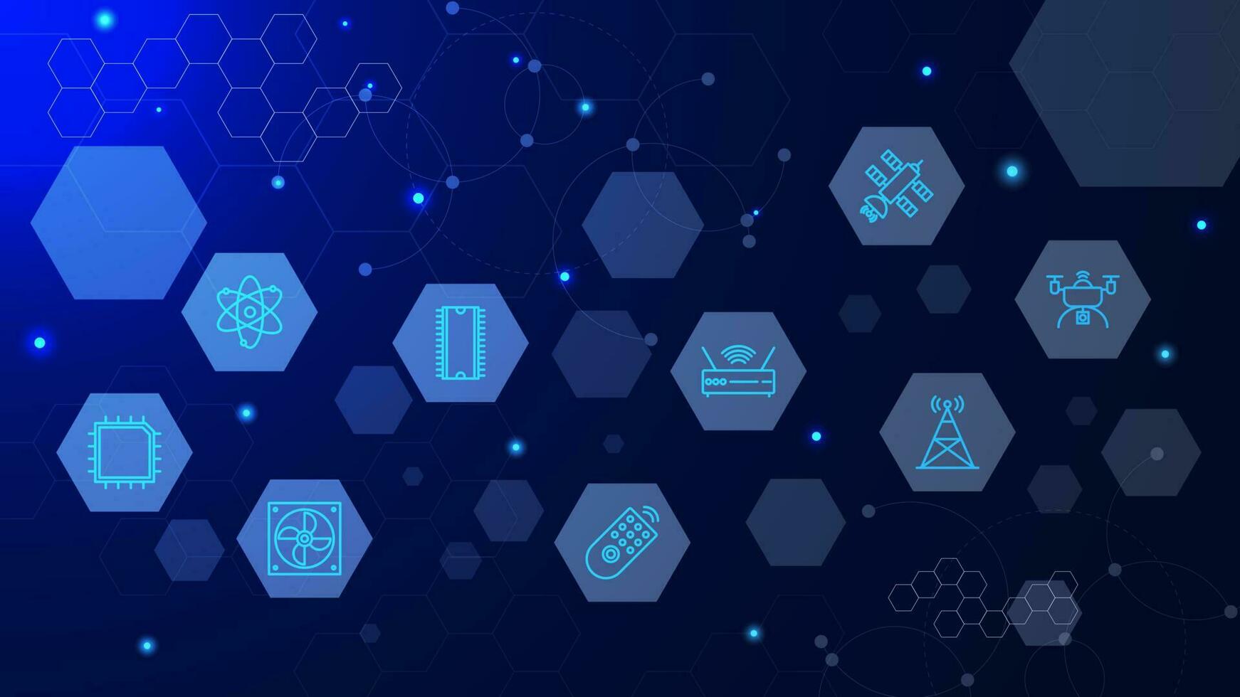 Global network connection with technology icons. Business network with digital communication technology concept background. Vector illustration. Pro Vector