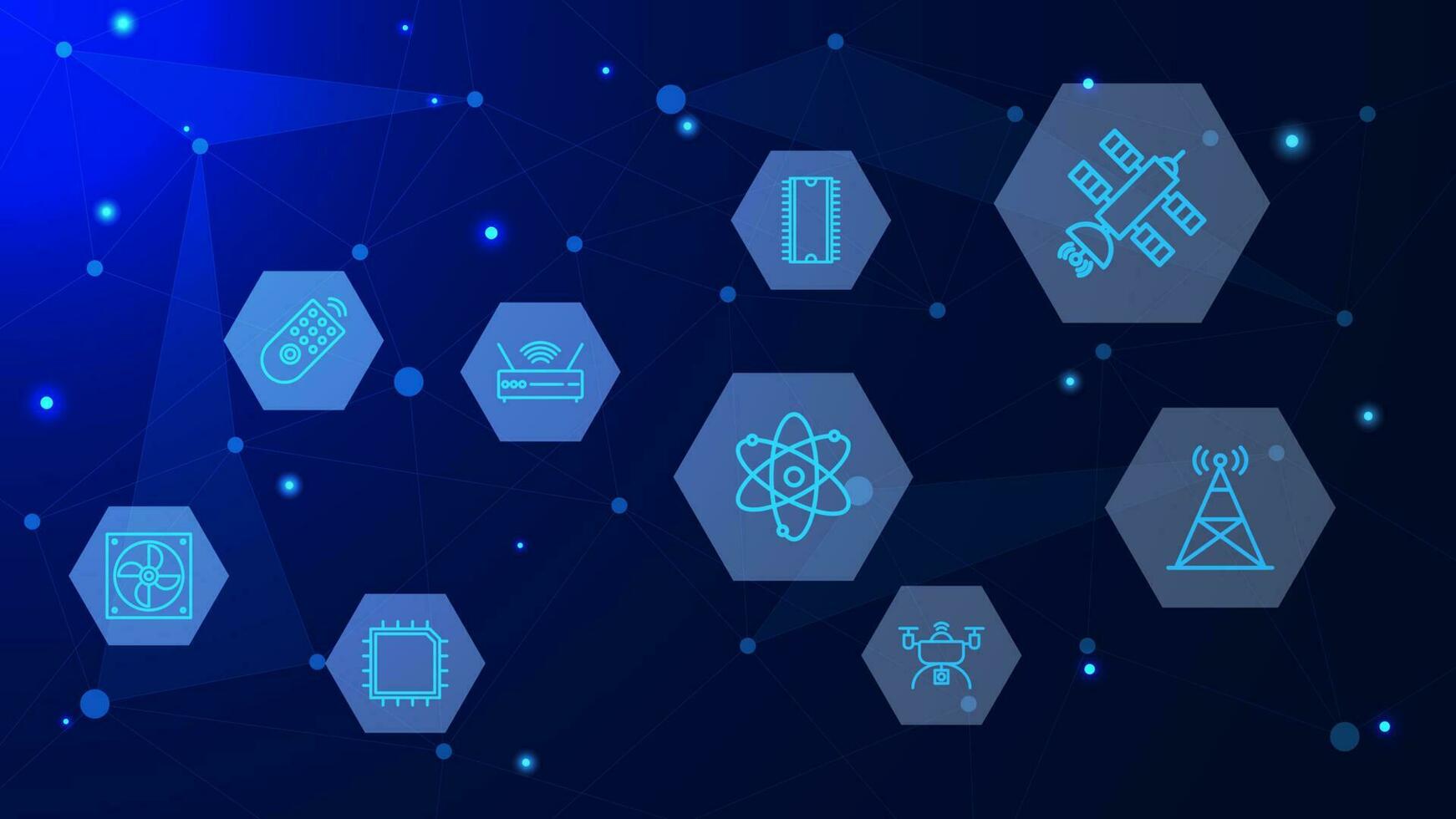 Global network connection with technology icons. Business network with digital communication technology concept background. Vector illustration. Pro Vector