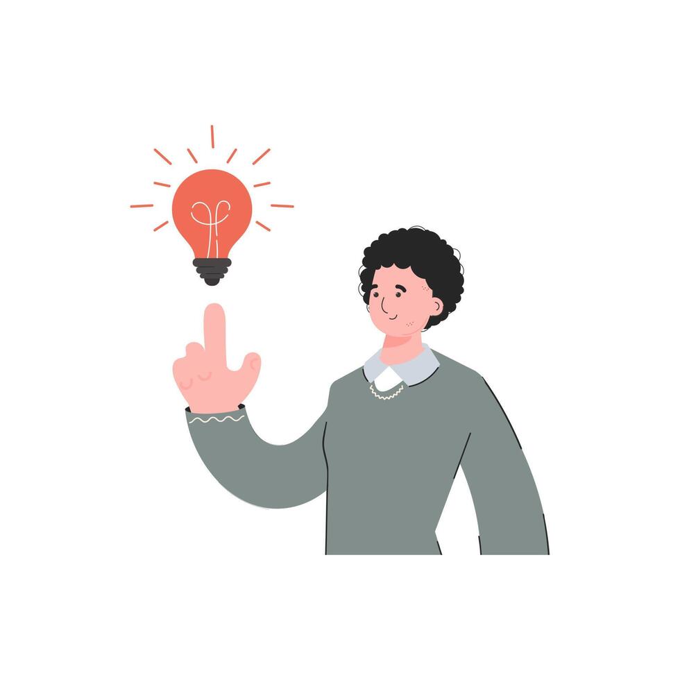 A man is waist-deep who had an idea in the form of a light bulb. Isolated. Element for presentations, sites. Pro Vector