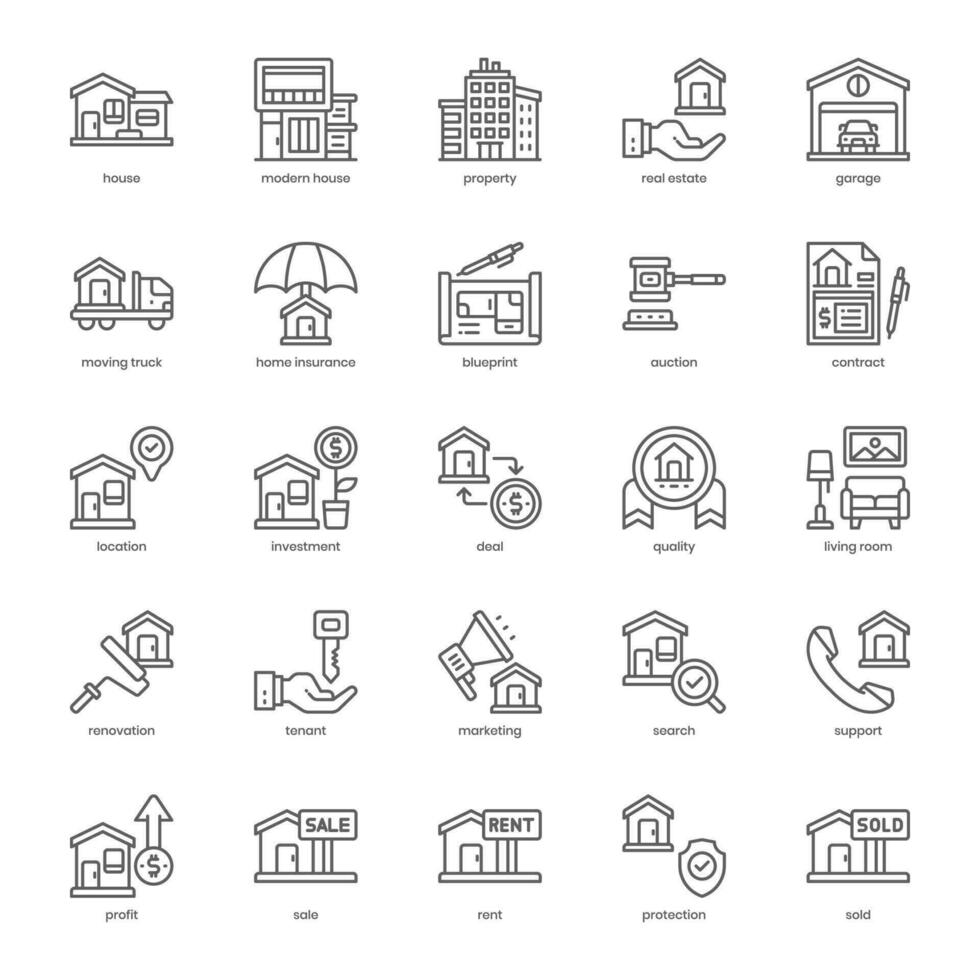 Property icon pack for your website design, logo, app, and user interface. Property icon outline design. Vector graphics illustration and editable stroke. Pro Vector