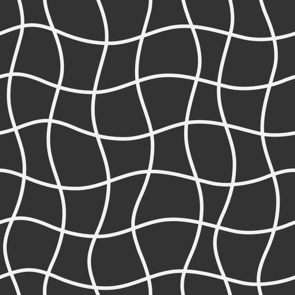 Cartoon Distorted Groovy Chessboard Seamless Pattern. Retro Style for Print on Textile, Wrapping Paper. Vector Black Background Pro Vector