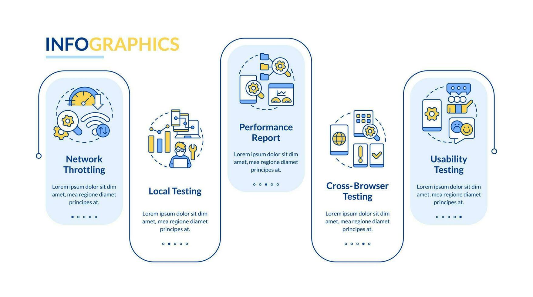 Mobile first design testing blue rectangle infographic template. Data visualization with 5 steps. Editable timeline info chart. Workflow layout with line icons Pro Vector