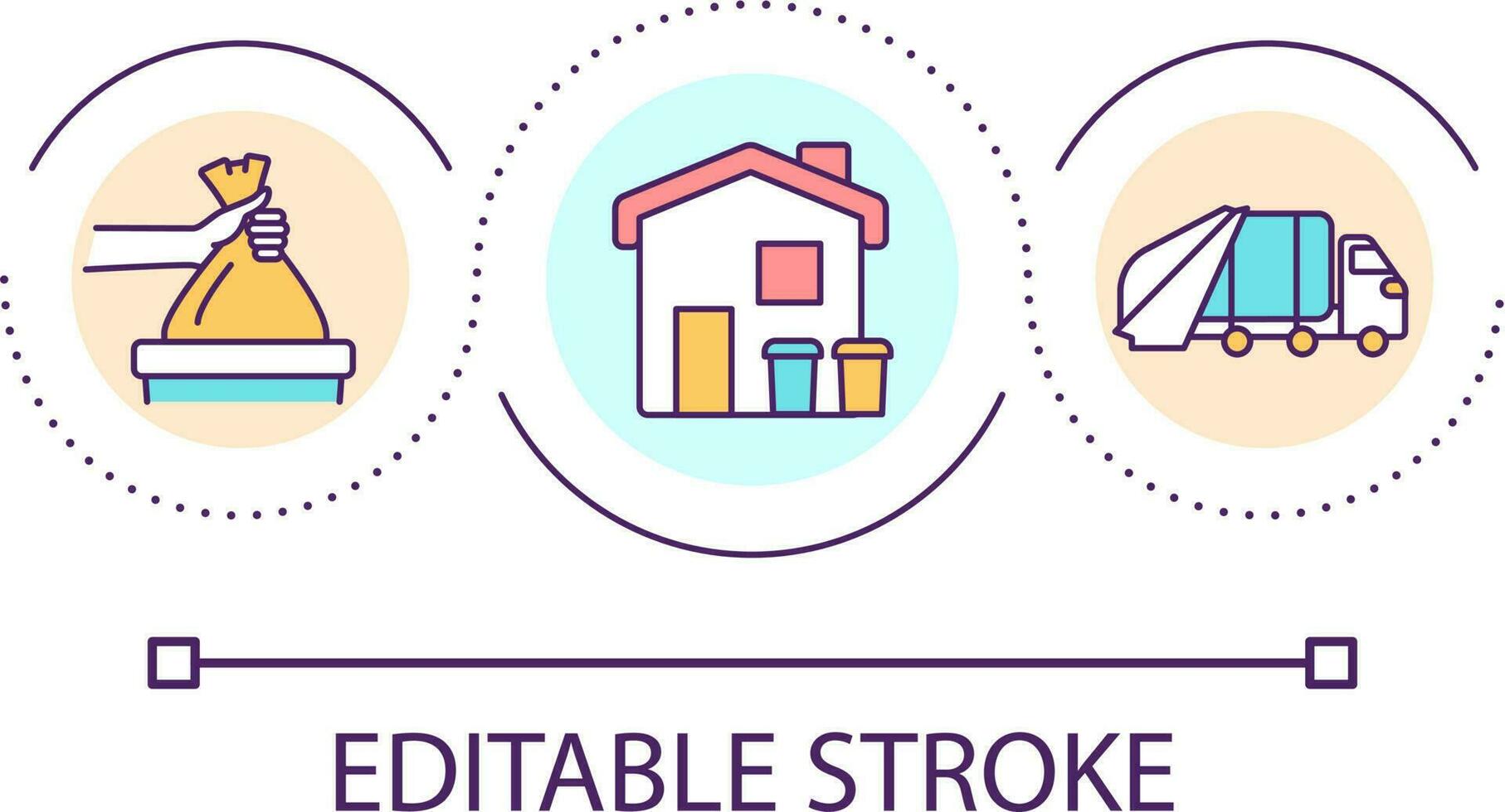Curbside collection service loop concept icon. Household waste disposal. Transportation of garbage abstract idea thin line illustration. Isolated outline drawing. Editable stroke Pro Vector