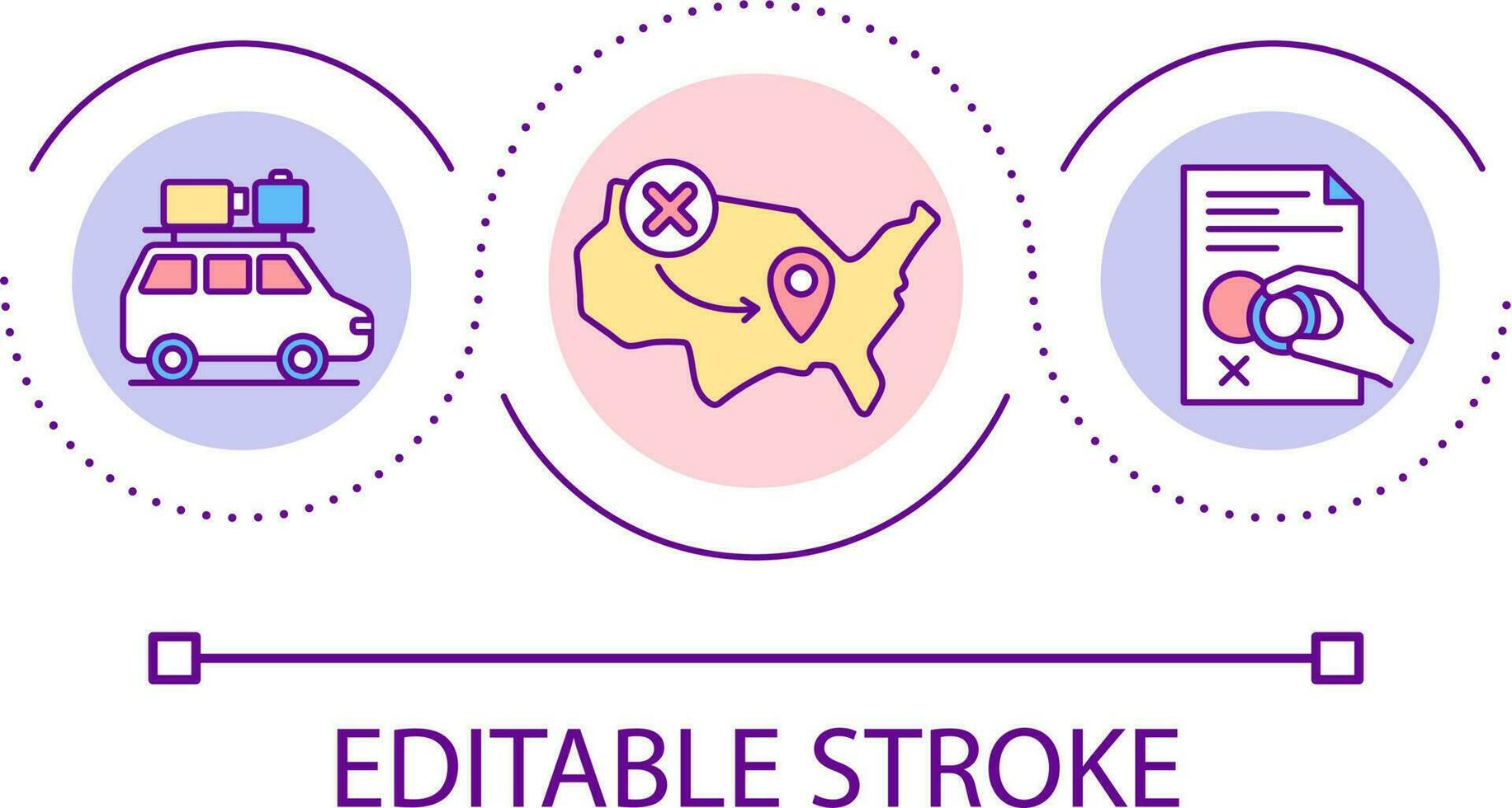 Internal deportation loop concept icon. Exclusion from state. Displacement inside country abstract idea thin line illustration. Isolated outline drawing. Editable stroke Pro Vector
