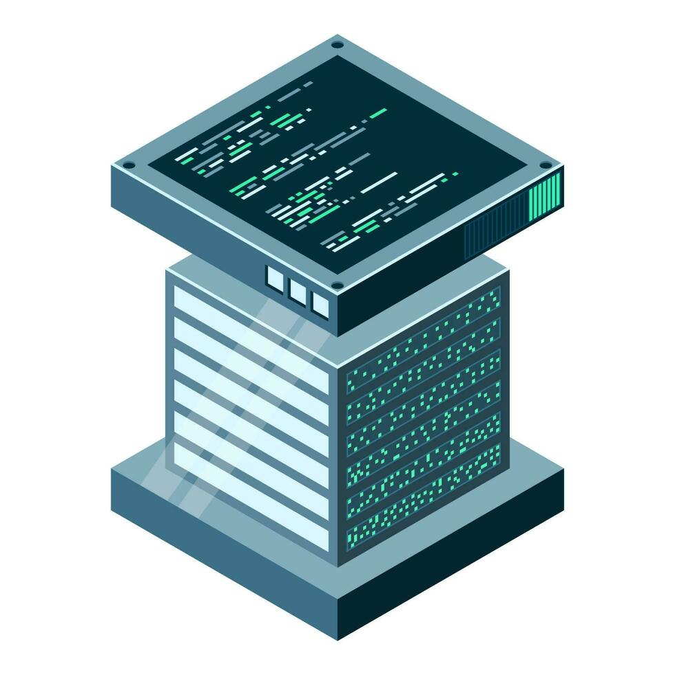 Isometric futuristic server. Isometric database or data center. Abstract blockchain. Computer storage. Cloud storage. Vector illustration Pro Vector