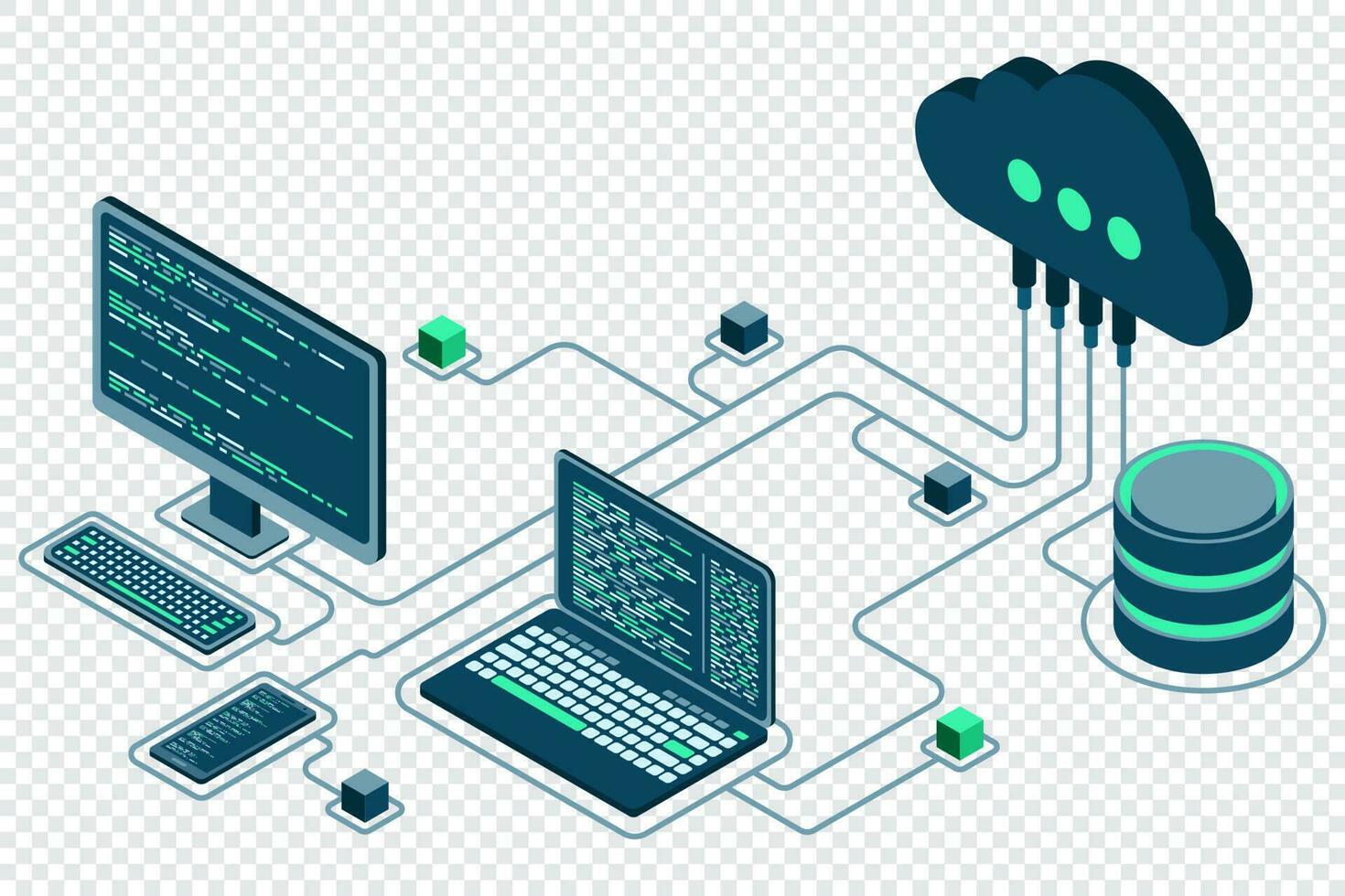 Cloud technology computing concept. Modern cloud technology. Data center isometric concept. Isometric cloud technology with datacenter. Web hosting concept. Vector illustration Pro Vector
