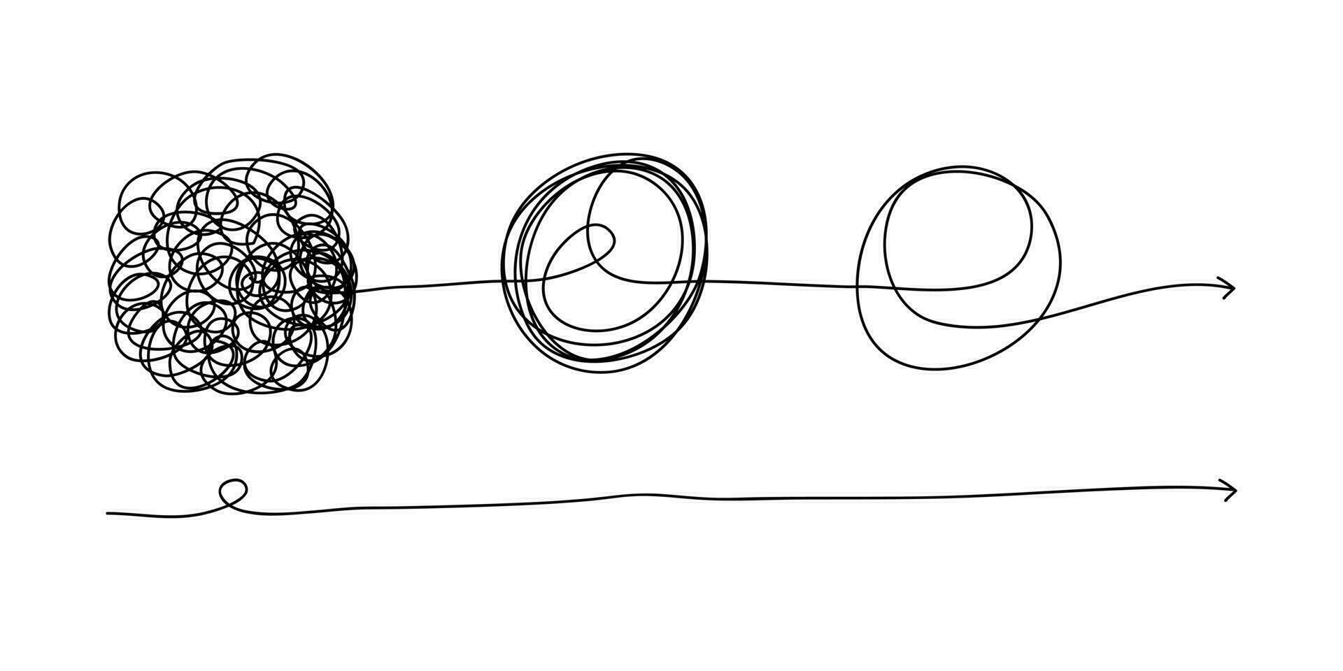 Scribble line doodles. the concept of transition from complicated to simple, simplifying the complex, confusion clarity or path. isolated on white background. vector illustrations Pro Vector