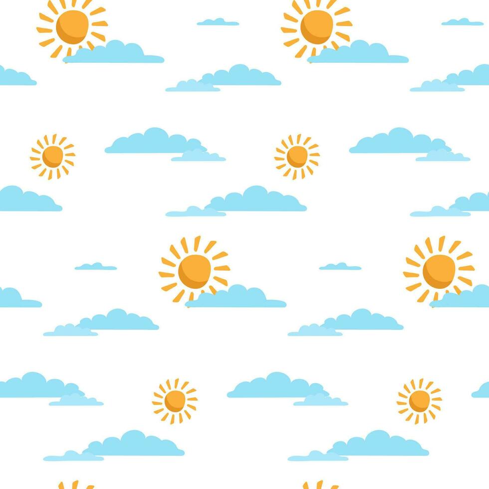 Seamless background with the image of the sky. Clouds and suns. Wrapping paper, pattern Pro Vector
