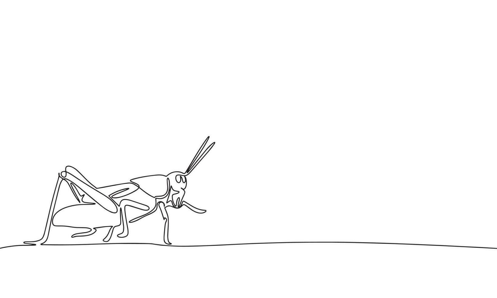Hand drawn grasshopper. One line continuous grasshopper. Line art insect. Outline bug. Vector illustraiton isolated on white background. Pro Vector