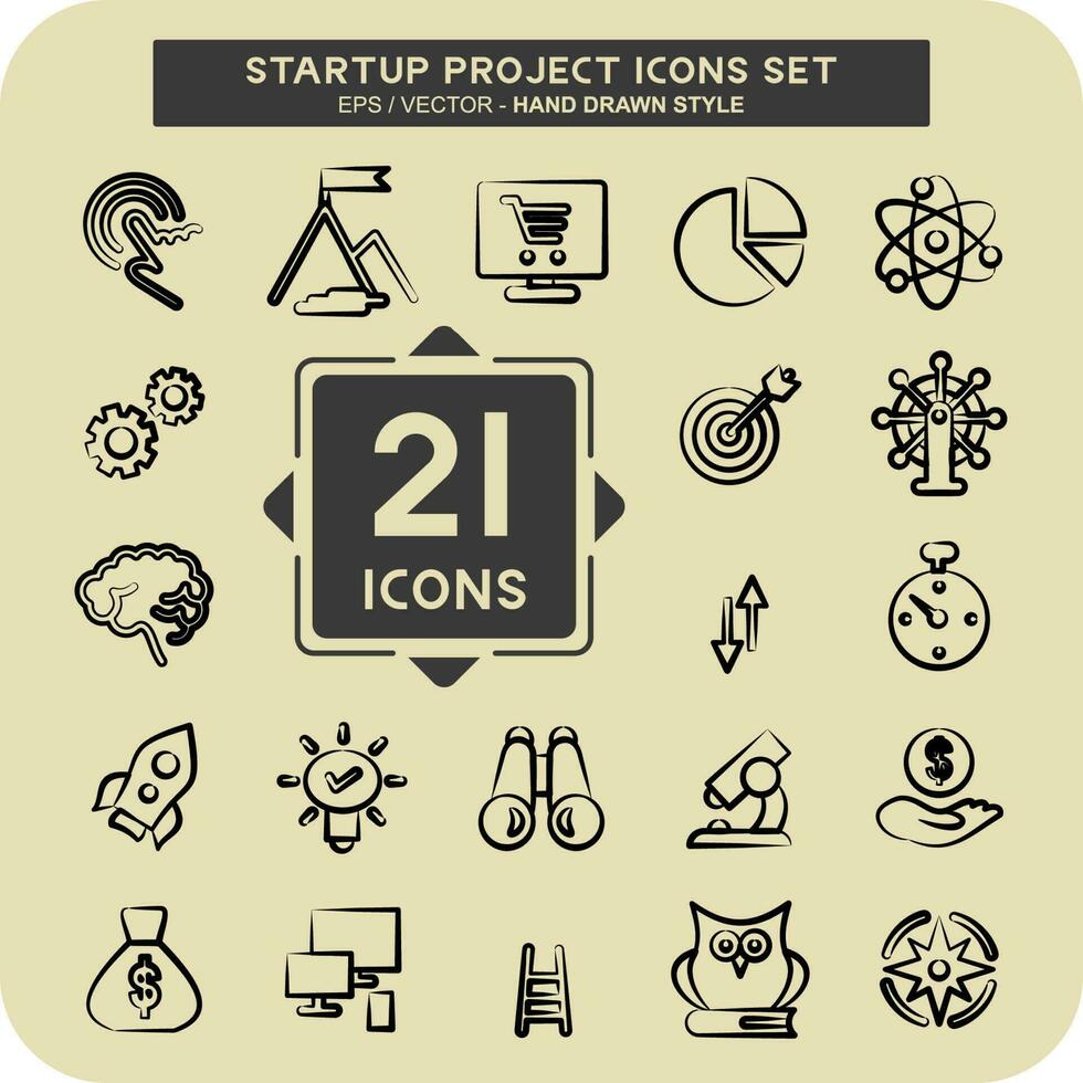Icon Set Startup Project. suitable for Startup symbol. hand drawn style. simple design editable Pro Vector and Pro SVG