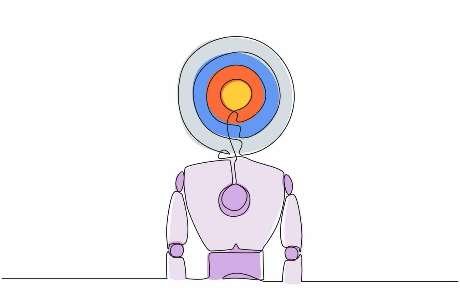Single one line drawing robot with target instead of head. Future technology development. Artificial intelligence and machine learning process. Continuous line draw design graphic vector illustration Pro Vector