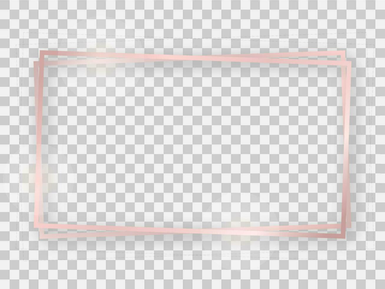 Double rose gold shiny 16x9 rectangular frame with glowing effects and shadows Pro Vector